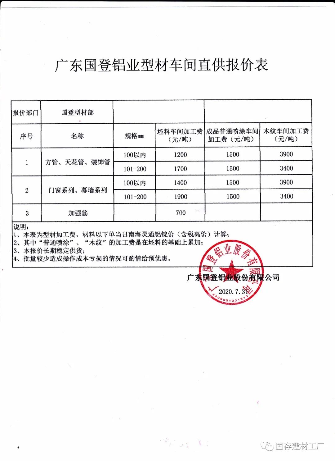 好了,我們就直接說事,國登鋁業(yè)推出了她長期穩(wěn)定的車間報(bào)價(jià),不懂的看熱鬧,懂行的看門道,來吧,我們來看一看這個(gè)報(bào)價(jià),你是否意識到過去,你的材料已經(jīng)購買貴了!
